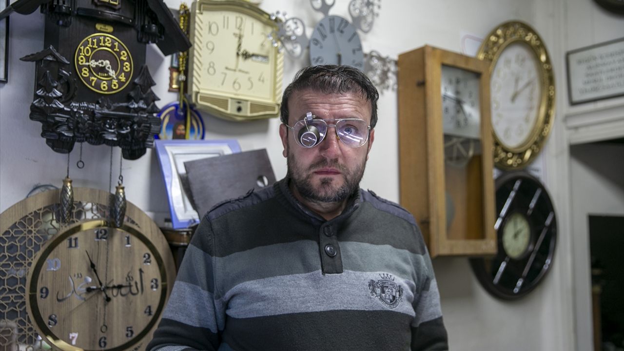 ADIYAMAN (AA) - Kahramanmaraş merkezli 6 Şubat 2023'teki depremlerde ailesinin 5 ferdini kaybeden 35 yıllık saat ustası Gökmen Yıldız, babasının izinden giderek unutulmaya yüz tutan saat tamirciliğine devam ediyor.