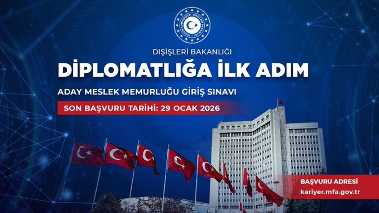 T.C. Dışişleri Bakanlığı tarafından yayımlanan duyuruya göre, Aday Meslek Memurluğu Giriş Sınavı başvuruları devam ediyor. Diplomat olmak isteyen adaylar için başvurular 16 Aralık 2025 Salı günü saat 14.00’te başladı.