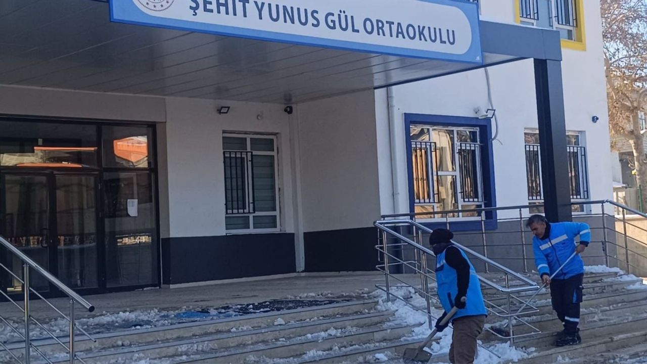 Fen İşleri ile Temizlik İşleri Müdürlüğü ekipleri, kar yağışının durmasının hemen ardından eş zamanlı olarak sahaya inerek okul bahçeleri, yaya yolları ve araç giriş güzergâhlarında kar küreme, tuzlama ve solüsyon uygulamaları gerçekleştirdi. Yapılan çalışmalarla eğitim kurumlarının çevresi güvenli hale getirildi.