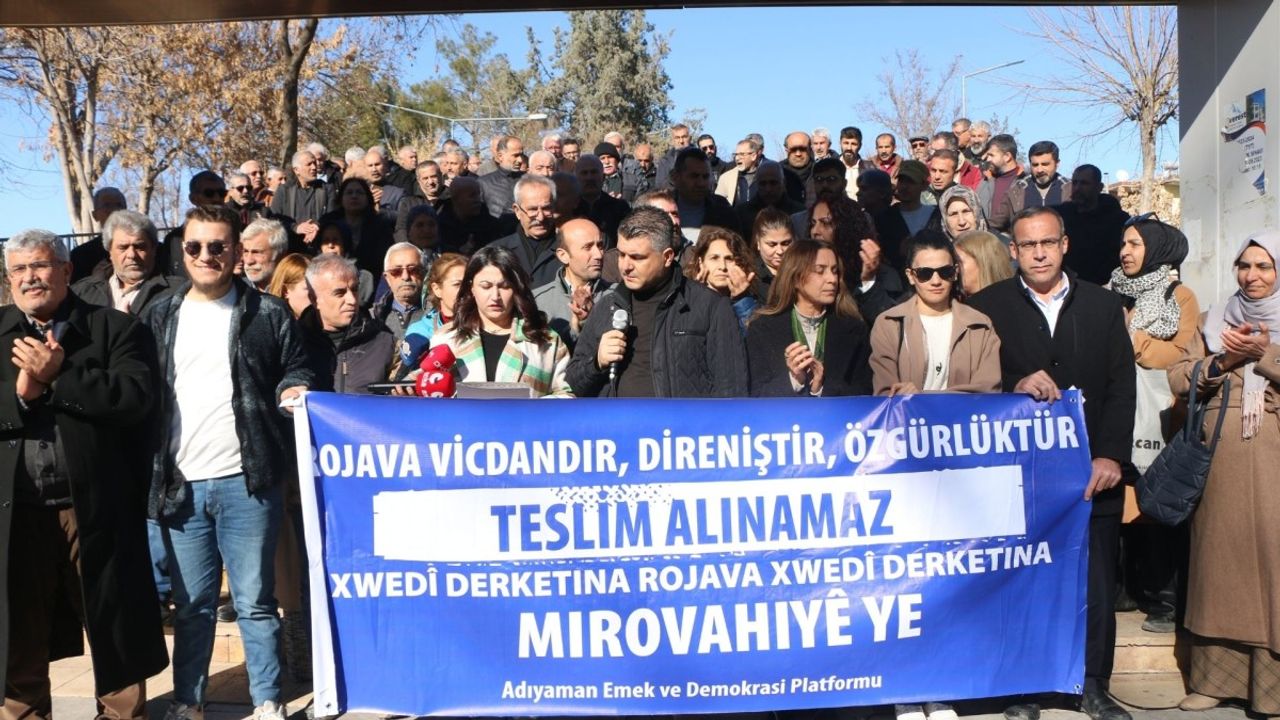 ADIYAMAN (PERRE) - Adıyaman Emek ve Demokrasi Platformu, Suriye'nin Halep kentinde Kürt halkının yoğun olarak yaşadığı Şeyh Maksut ve Eşrefiye mahallelerine yönelik saldırıları kınamak amacıyla Mimar Sinan Kültür Parkı önünde basın açıklaması yaptı.
