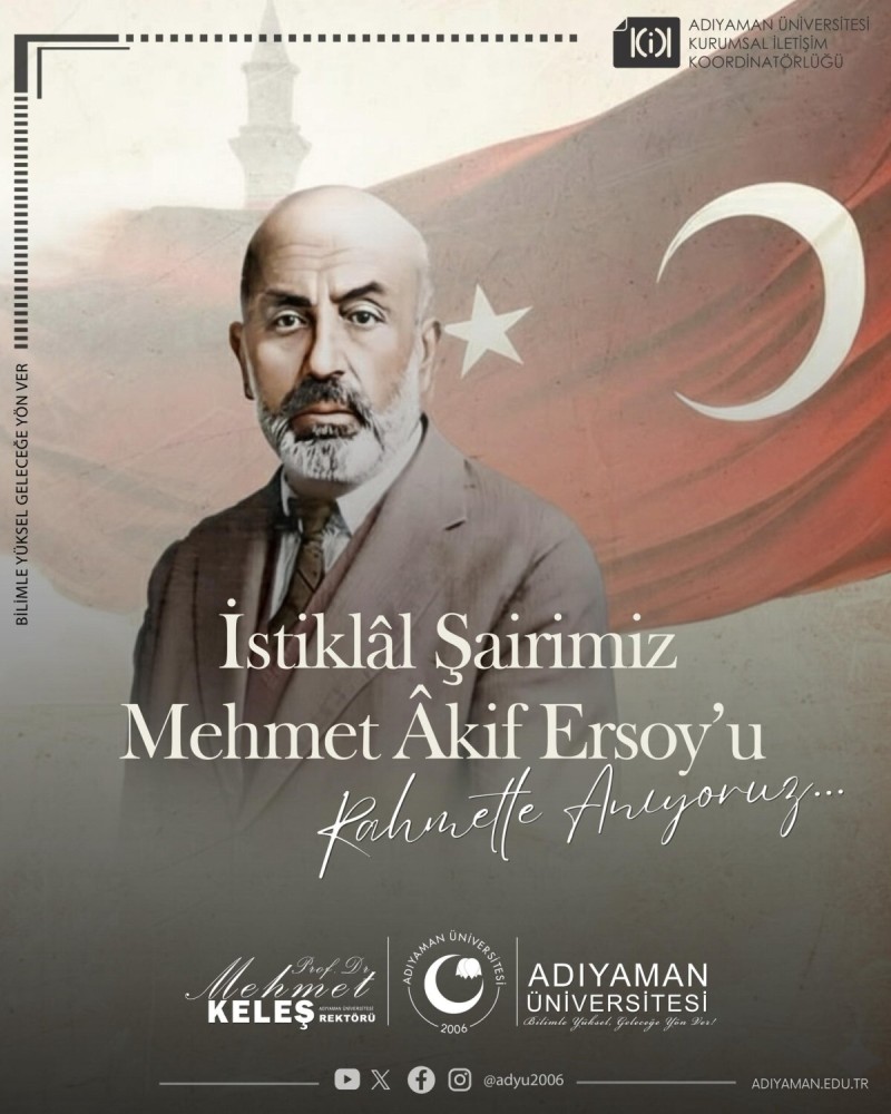 ADIYAMAN (PERRE) - Adıyaman Üniversitesi, İstiklâl Marşı'nın yazarı, millî şair Mehmet Âkif Ersoy'u vefatının 89. yıl dönümünde rahmet ve minnetle andı.