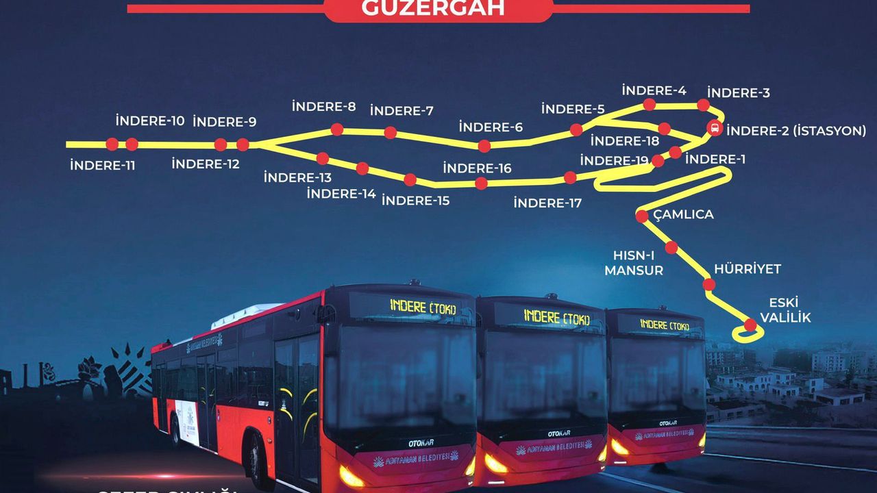 İndere’nin içindeki tüm ana yolları kapsayacak şekilde güncellenen güzergâhta seferlerin yarım saatte bir yapılacağı belirtildi. Günlük 33 seferin gerçekleştirileceği ve toplam 27 durakla vatandaşlara daha erişilebilir bir ulaşım imkânı sunulacağı kaydedildi.