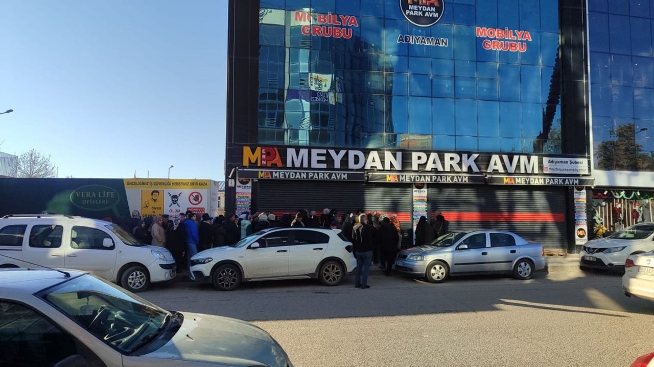 Adıyaman'da Medyan Park AVM'de düzenlenen indirim kampanyasını duyan vatandaşlar, sabahın erken saatlerinden itibaren alışveriş merkezine gelerek uzun kuyruklar oluşturdu.
