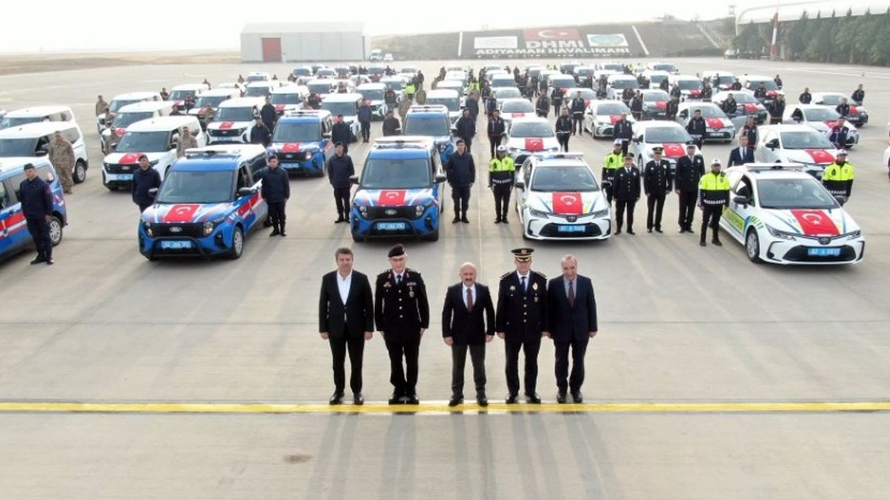 Adıyaman’da güvenlik hizmetlerinin daha etkin, hızlı ve güçlü bir şekilde yürütülmesi amacıyla Cumhurbaşkanı Recep Tayyip Erdoğan, İçişleri Bakanı Ali Yerlikaya ve hayırseverlerin katkılarıyla İl Emniyet Müdürlüğü ve İl Jandarma Komutanlığına toplam 116 yeni hizmet aracı teslim edildi.