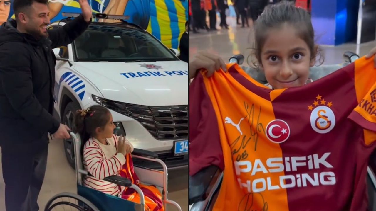 Maçın ardından oyuncuların çıkış yaptığı yere götürülen İkra, en sevdiği Galatasaraylı oyuncu Osimhen ve tüm takımla tanışıp sohbet etti ve tüm takımın imzası bulunan formaya kavuştu.