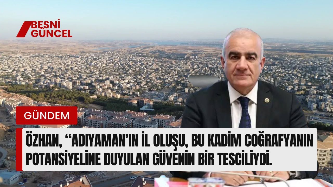 Adıyaman Milletvekili Hüseyin Özhan, Adıyaman’ın il oluşunun 71. yılı dolayısıyla yayımladığı mesajda, kentin üretim kapasitesinden turizmine kadar güçlü bir dönüşüm yaşadığını vurguladı.