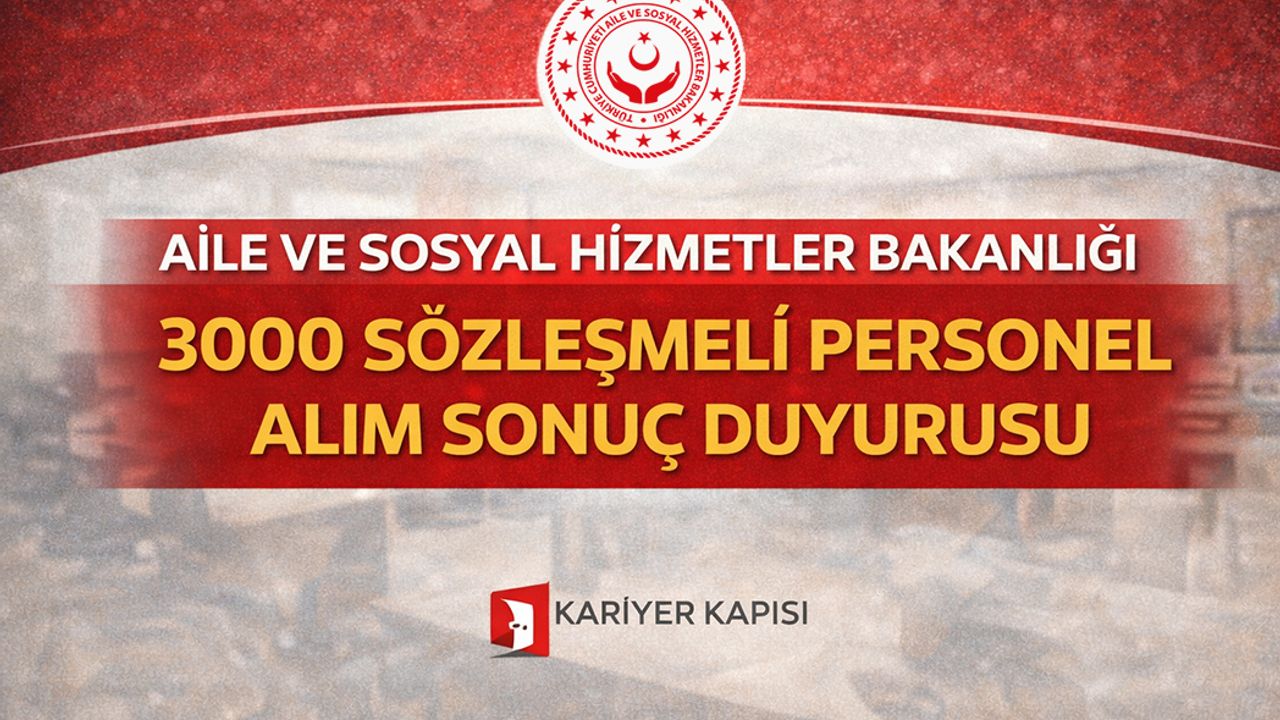 Aile ve Sosyal Hizmetler Bakanlığı, Merkez ve Taşra Teşkilatı'nda 657 sayılı Devlet Memurları Kanunu’nun 4/B maddesi kapsamında çalıştırılmak üzere 3.000 sözleşmeli personel alımı için yapılan başvuruların sonuçlarını açıkladı. 15-26 Aralık 2025 tarihleri arasında alınan başvuruların değerlendirmesi tamamlandı.
