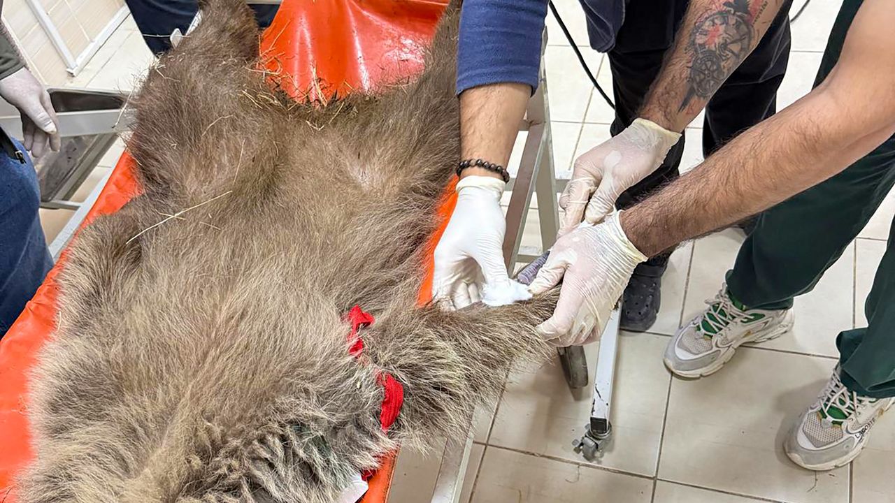 Zorlu geçen ameliyatla ayının sırtındaki mermi çekirdeği çıkarıldı.