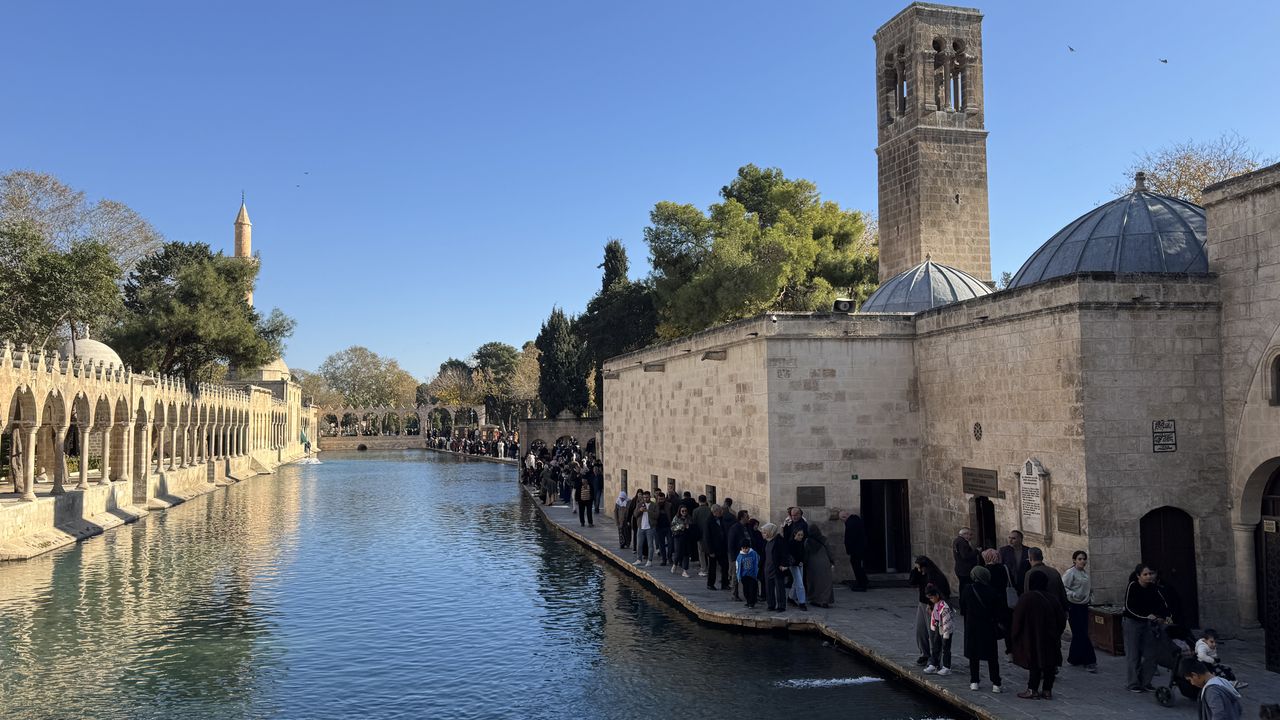 Termometrenin 15 dereceyi gösterdiği Şanlıurfa'da hafta sonu tatilini fırsat bilenler, 'dünyanın en büyük doğal akvaryumu' olarak bilinen, inanç turizminde önemli yere sahip tarihi mekanı ziyaret ediyor.