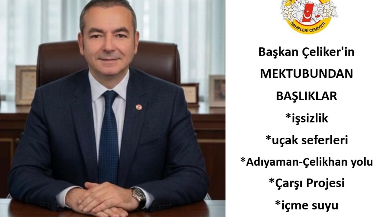 Adıyaman Basın Kartı Sahipleri Derneği Başkanı Murat Çeliker, Cumhurbaşkanı Erdoğan’a hitaben yayımladığı açık mektubunda kentteki işsizlik, uçak seferleri, Adıyaman-Çelikhan yolu, Çarşı Projesi, içme suyu ve sulama sorunlarına değindi.