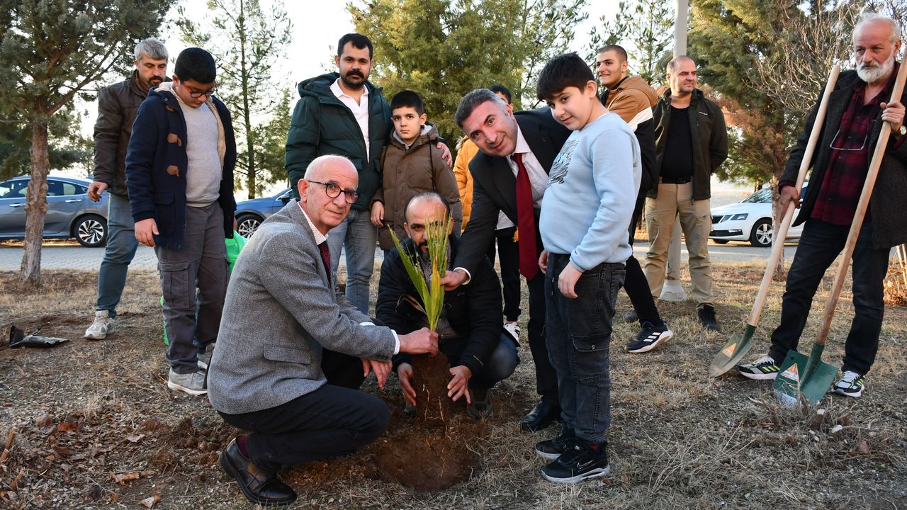 Üniversitenin Batı Raman Kampüsü'ndeki etkinlikte, Renkli Eller Otizm Derneği üyesi özel bireyler, Rektör Prof. Dr. İdris Demir ile fidan dikti.