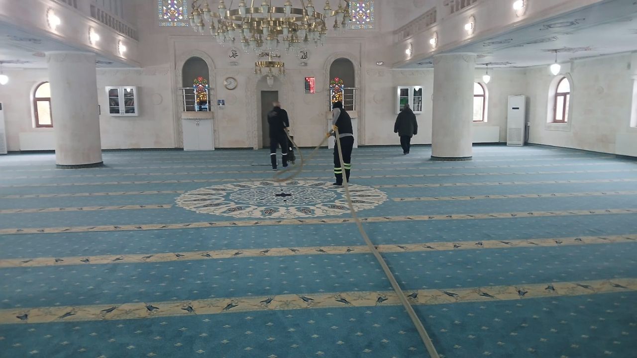 Belediyeden yapılan açıklamaya göre, Vali ve Belediye Başkan Vekili Ekrem Canalp'in talimatıyla yürütülen çalışma kapsamında cami, mescit ve Kur'an kurslarının halıları temizleniyor.