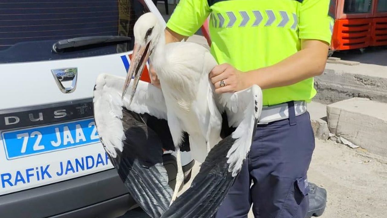 Valilikten yapılan açıklamaya göre, jandarma trafik timleri ilçenin Samanyolu köyü kırsalında yol kenarında bir leylek gördü.