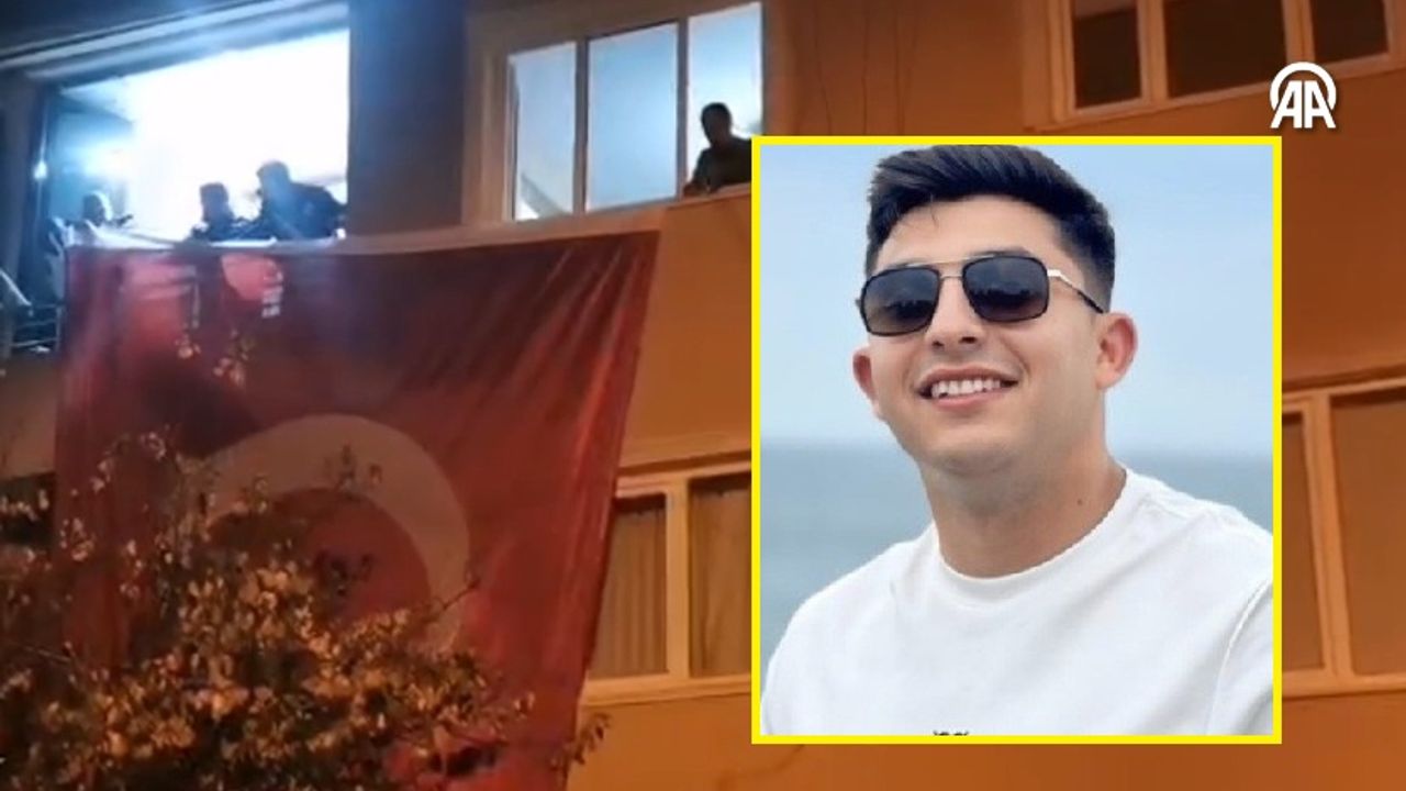 Ailenin yaşadığı binaya Türk bayrağı asıldı.