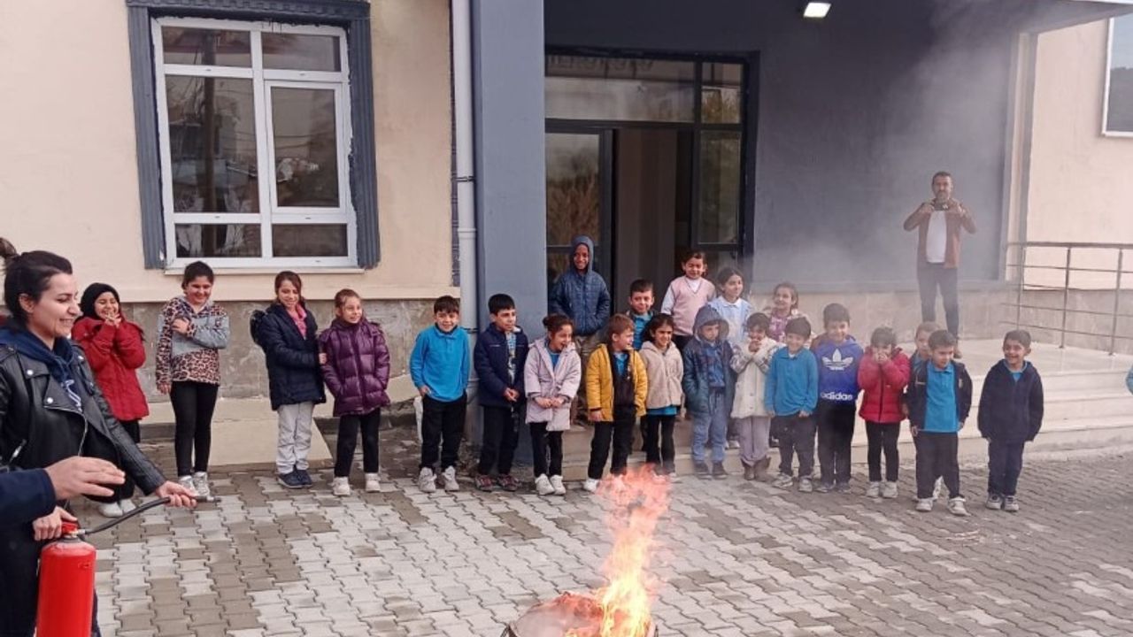 Besni İtfaiyesi Amirlerinden Oğuz Yıldırım tarafından okul bahçesinde yapılan bilgilendirme çalışmasında öğrenci ve öğretmenlere yangın söndürme ve acil durumlarda tahliye konularında bilgilendirme çalışması yapıldı.