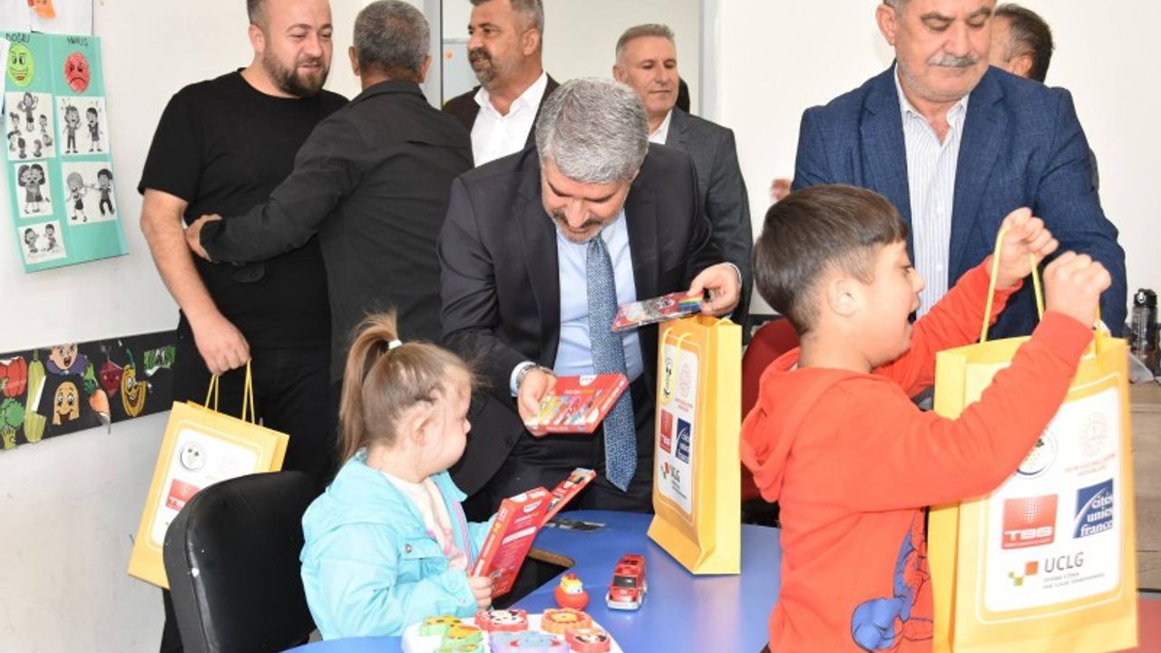 Besni İlçe Milli Eğitim Müdürü Mehmet Demirel ve Belediye Meclis Üyeleriyle beraber Besni Özel Eğitim Uygulama Okulu'nda oluşturulan Spor ve Müzik Atölyelerinin açılışını gerçekleştiren Besni Belediye Başkanı Reşit Alkan, Öğrencilere boyama seti armağan etti.