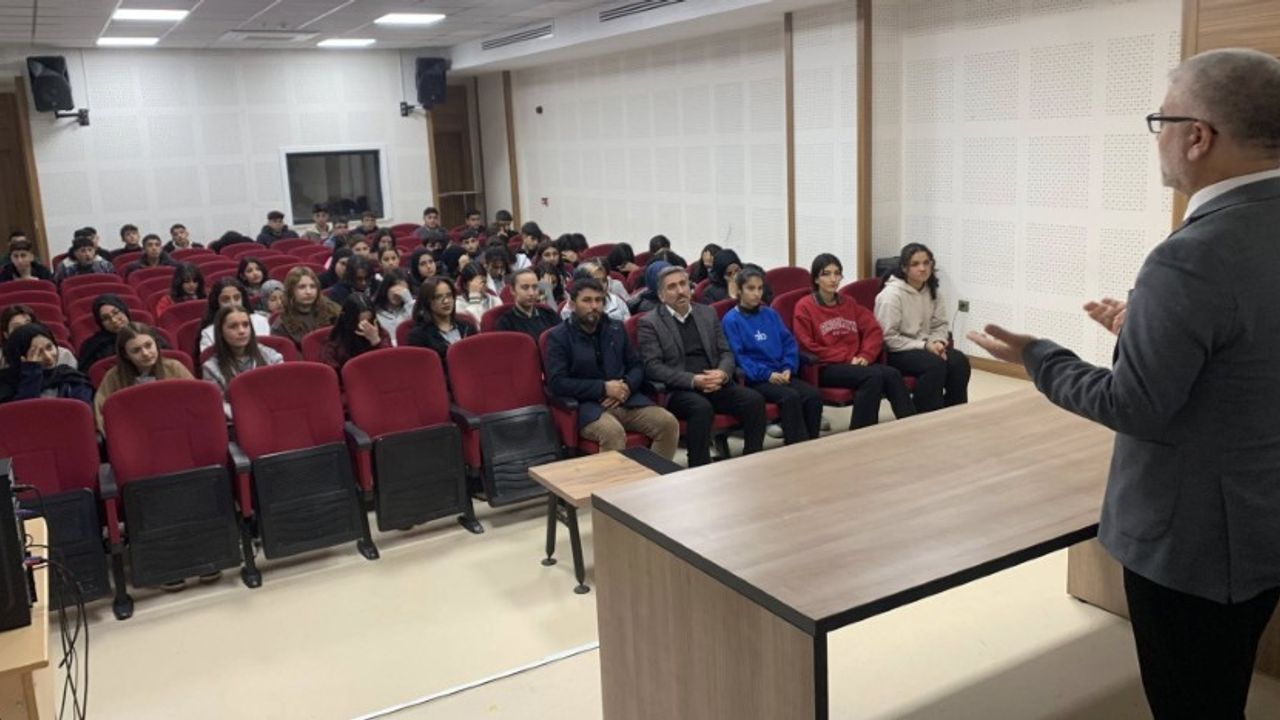 Bir süre okul yöneticileriyle sohbet eden Müftü Erçek, öğrencilere Gençlik Bilgi Yarışması’nın amacı, içeriği ve katılım süreci hakkında bilgi verildi.