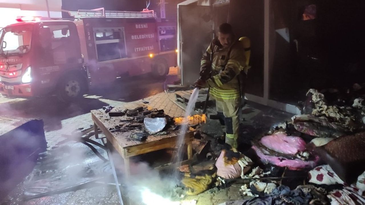 Sarıkaya Köyünde, Besni Belediyesi İtfaiye Müdürlüğü tarafından müdahale edilerek söndürülen konteyner yangını köyde korkuya neden oldu.