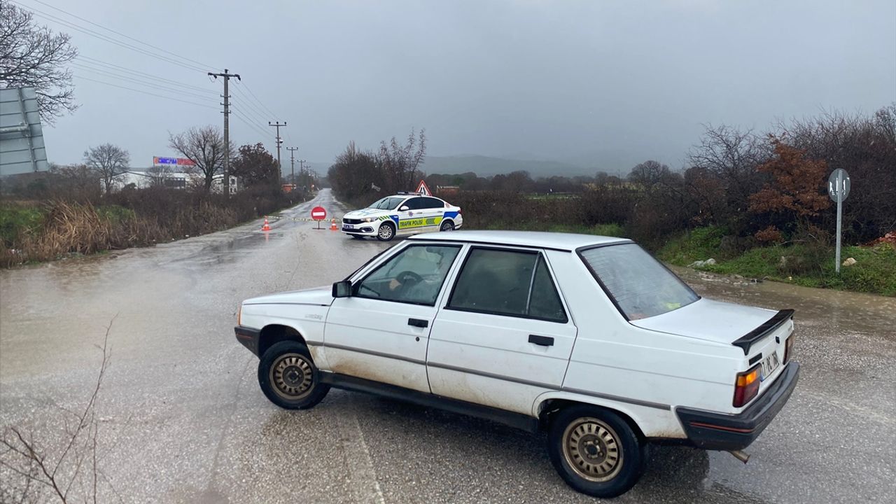 Yağış nedeniyle Ayvacık ve Küçükkuyu arasındaki bağlantı yolu kapandı, sürücüler su birikintileri nedeniyle trafikte ilerlemekte güçlük çekti.