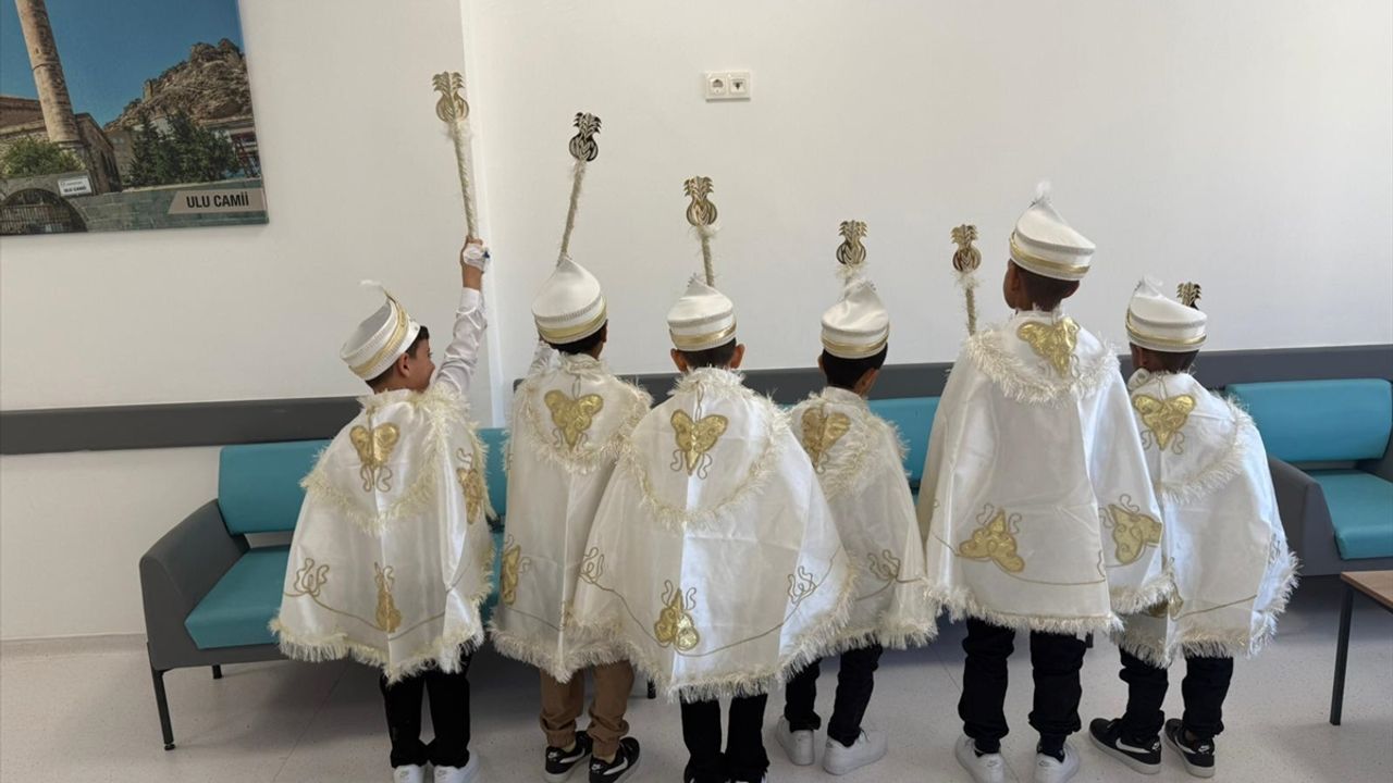 DİYARBAKIR (AA) - Çermik Kaymakamı Adem Karataş ile Belediye Başkanı Şehmus Karamehmetoğlu, belediye tarafından sünnet ettirilen çocukları ziyaret etti.