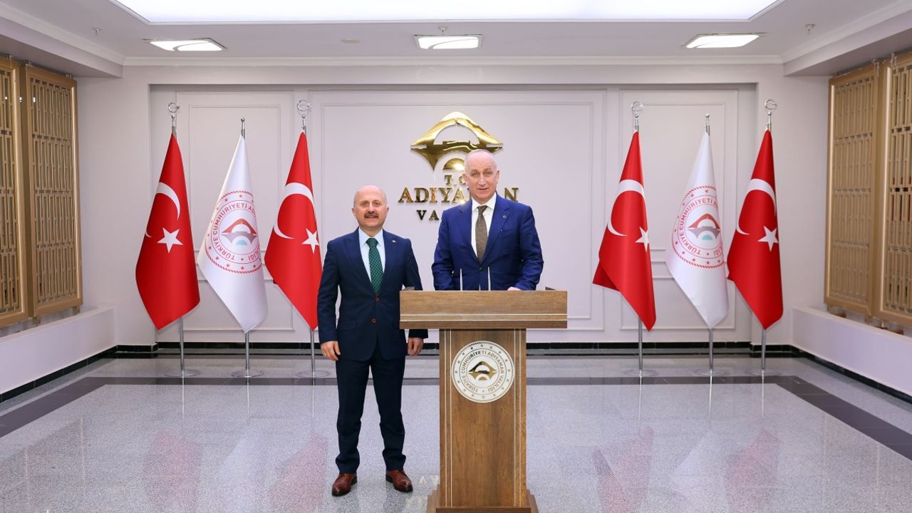 Adıyaman'a gelen Çevre, Şehircilik ve İklim Değişikliği Bakan Yardımcısı Ömer Bulut ile TOKİ Başkanı Mustafa Levent Sungur, ilk olarak Adıyaman Valisi Osman Varol'u ziyaret etti.