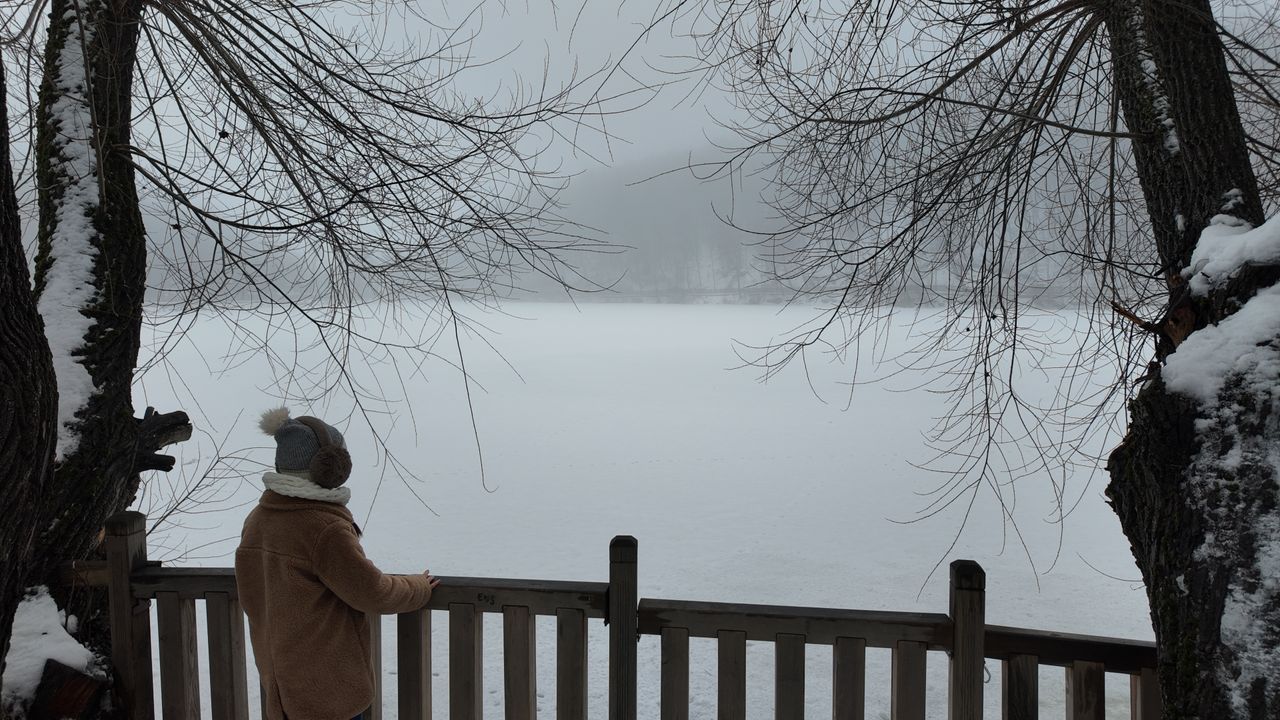 Soğuk hava nedeniyle sınırlarındaki gölün buz tuttuğu parkı ziyaret edenler, piknik yapıp doğada vakit geçirdi.