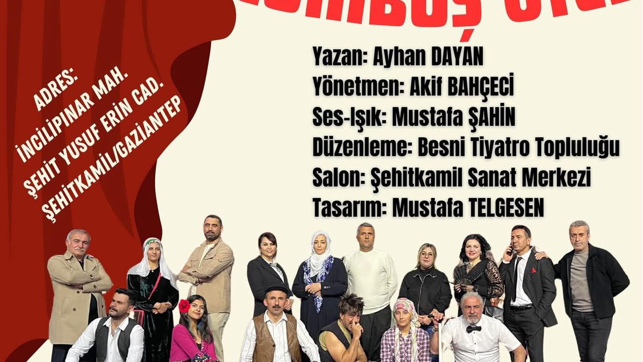 GAZİANTEP (BESNİ GÜNCEL) – Besni Tiyatro Topluluğu’nun hazırladığı “Cümbüş Otel” adlı tiyatro oyunu, Gaziantep’te sanatseverlerle buluşmaya hazırlanıyor. Oyun, 11 Ocak 2026 Pazar günü saat 19.30’da Şehitkamil Sanat Merkezi’nde sahnelenecek.