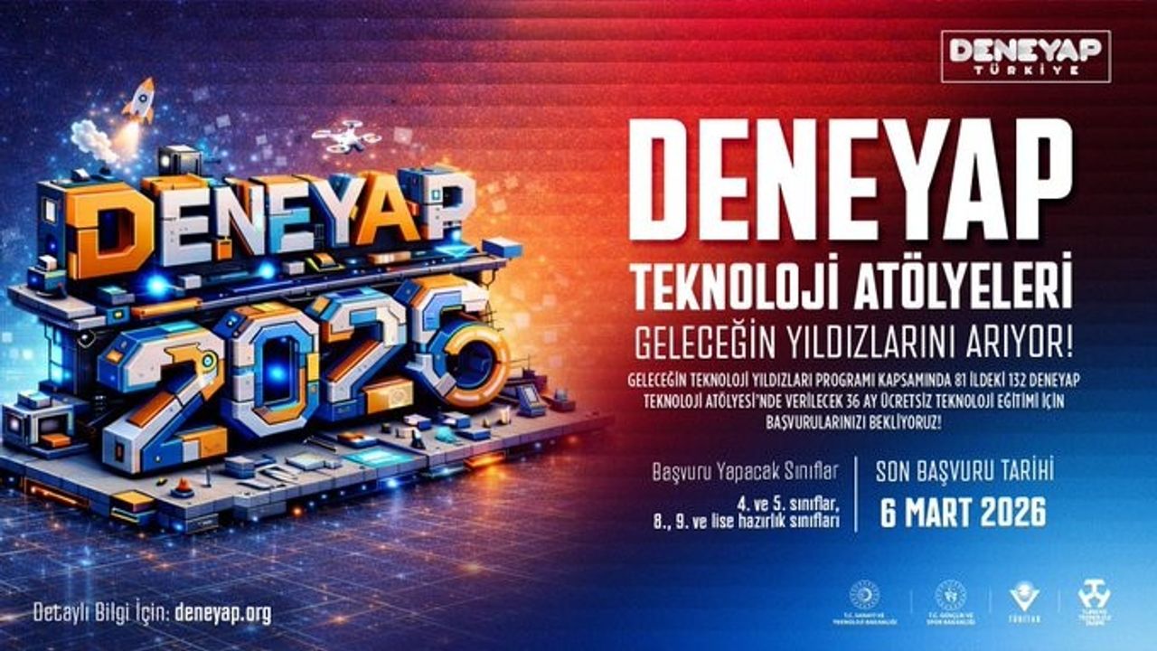 DENEYAP Teknoloji Atölyeleri Öğrenci Seçme Sınavı için son başvuru tarihi 6 Mart 2026 olarak açıklandı. Başvurular, ilgili resmî platformlar üzerinden gerçekleştirilecek.