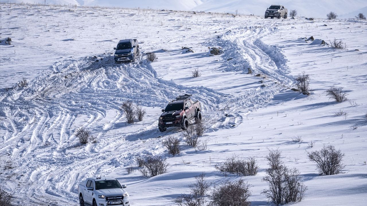 Zaman zaman kara saplanan 4x4 araçlarıyla karlı dağları aşan macera tutkunları ile Vali Çiftçi, doğada zor şartlarda yaşam mücadelesi veren hayvanlar için yanlarında getirdikleri yemleri toprağa bıraktı.