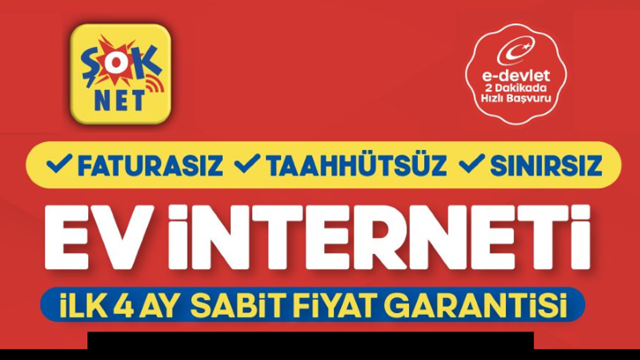 ŞOK NET, faturasız, taahütsüz ve sınırsız internet hizmetiyle 4 ay fiyat garantisiyle sadece 299 TL'den başlayan fiyatlarla!