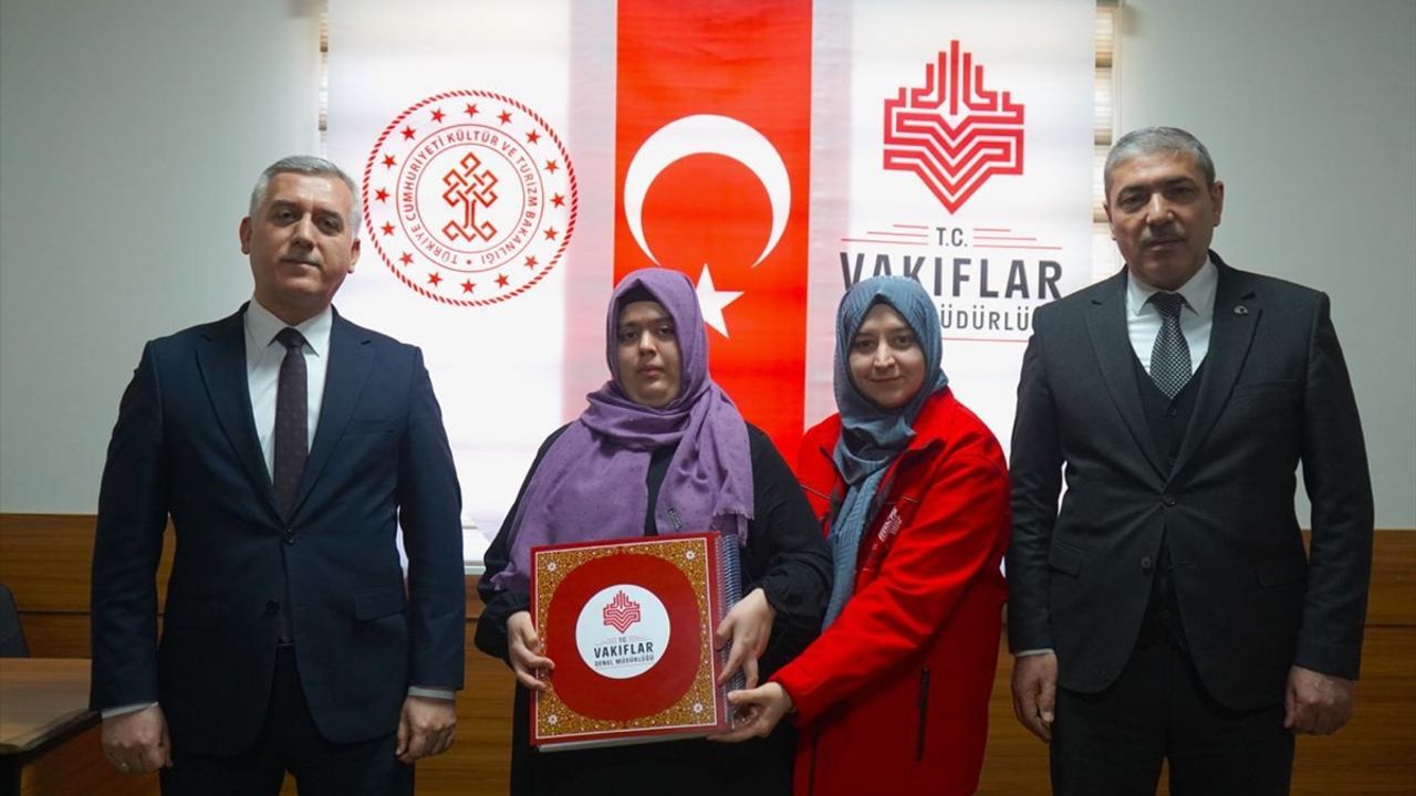 Kültür ve Turizm Bakanlığı Vakıflar Genel Müdürlüğü adına, görme engelli hafızlara Braille alfabesiyle basılan Kur'an-ı Kerim hediye edildi.