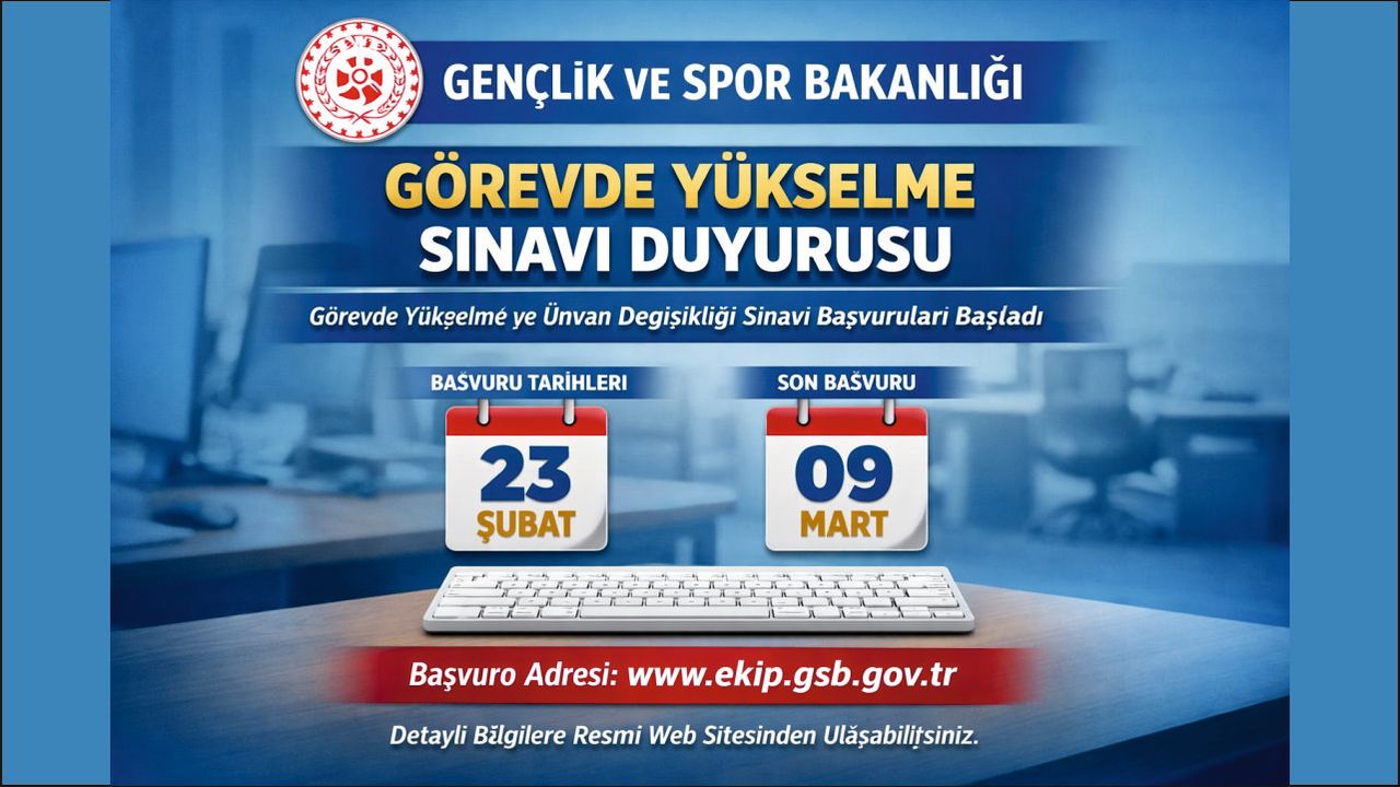 Gençlik ve Spor Bakanlığı, merkez ve taşra teşkilatında görev yapan personel için “Görevde Yükselme ve Ünvan Değişikliği Sınavı” başvurularının başladığını açıkladı.