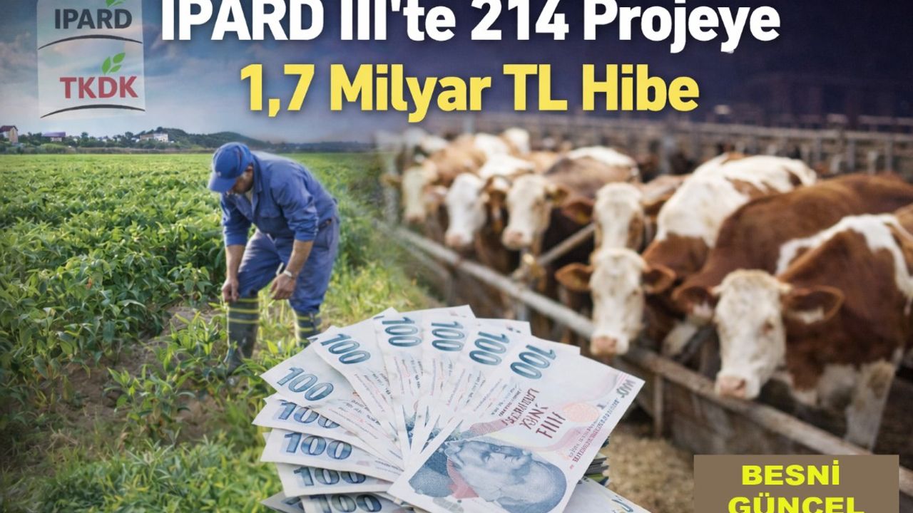 Bakan Yumaklı, “Çiftlik Faaliyetlerinin Çeşitlendirilmesi ve İş Geliştirme Tedbiri”ne başvuran 214 projenin, toplam 1,7 milyar TL hibe desteği almaya hak kazandığını bildirdi.