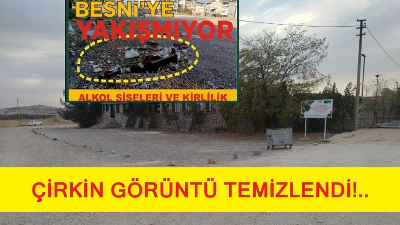 Gazetemizin 22 Kasım 2025 tarihli sayısında manşetten yayımladığımız “Bu Çirkin Görüntü Besni’ye Yakışmıyor!” başlıklı haberimizin oluşturduğu yankıyı dikkate alan işletmeci söz konusu alanı temizledi.