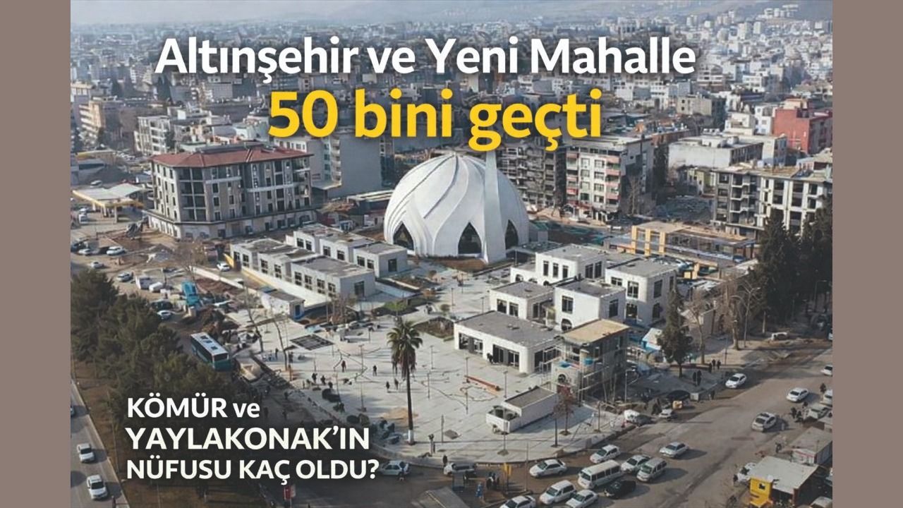 Verilere göre merkezin en kalabalık mahallesi 26 bin 153 kişiyle Altınşehir oldu. Altınşehir’i 25 bin 392 nüfusla Yeni Mahalle izledi. Ardından Siteler (20 bin 809), Yeşilyurt (18 bin 34), Cumhuriyet (15 bin 498) ve Sümerevler (15 bin 156) mahalleleri geldi.