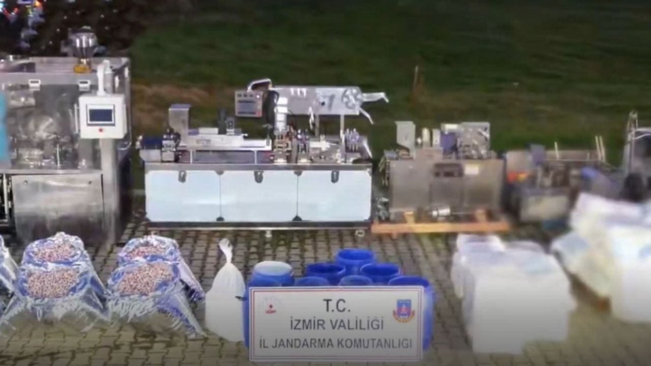İçişleri Bakanı Ali Yerlikaya, İzmir'de jandarma ekipleri tarafından uyuşturucu imalatı ve ticaretine yönelik düzenlenen operasyonda büyük miktarda uyuşturucu hap hammaddesinin ele geçirildiğini açıkladı. Bakan Yerlikaya, gerçekleştirilen operasyonda 1 ton 625 kilogram uyuşturucu hap hammaddesinin ele geçirildiğini ve 2 şüphelinin yakalandığını açıkladı.