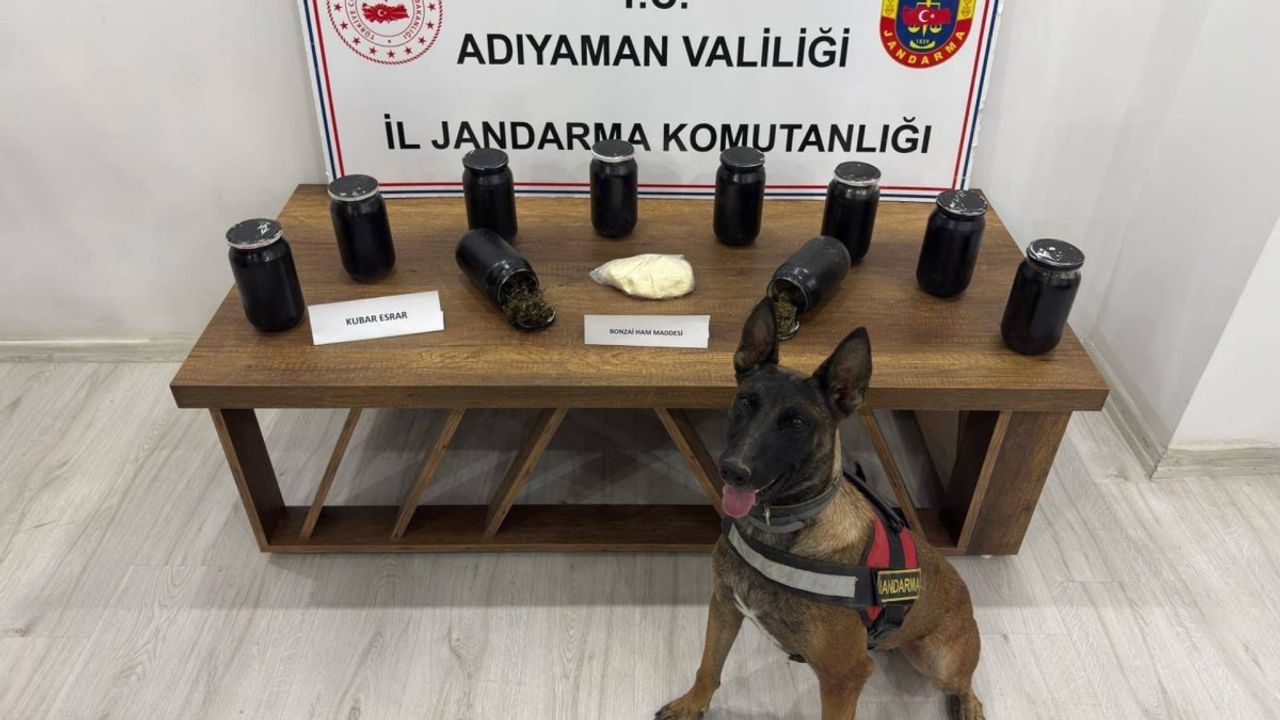 Kahta İlçe Jandarma Komutanlığı, İl Jandarma Komutanlığı İstihbarat ve Narkotik Şube Müdürlüğü ekipleri tarafından 7 Ekim 2025 tarihinde düzenlenen operasyon sonucunda, poşet içerisinde sarılı halde 300 gram bonzai ham maddesi ile 10 kavanoz içerisinde yaklaşık 6 kilogram esrar maddesi ele geçirildi.