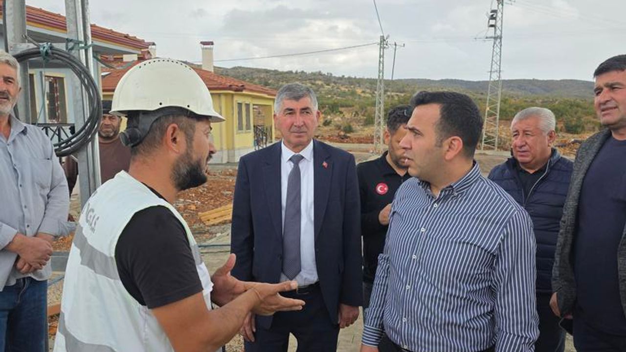 Adıyaman, Gölbaşı İlçe Kaymakamı Kadir Algın, beraberindeki heyetle birlikte Yukarı Nasırlı Köyü'nde yapımı süren kalıcı konut inşaat alanında incelemelerde bulundu.
