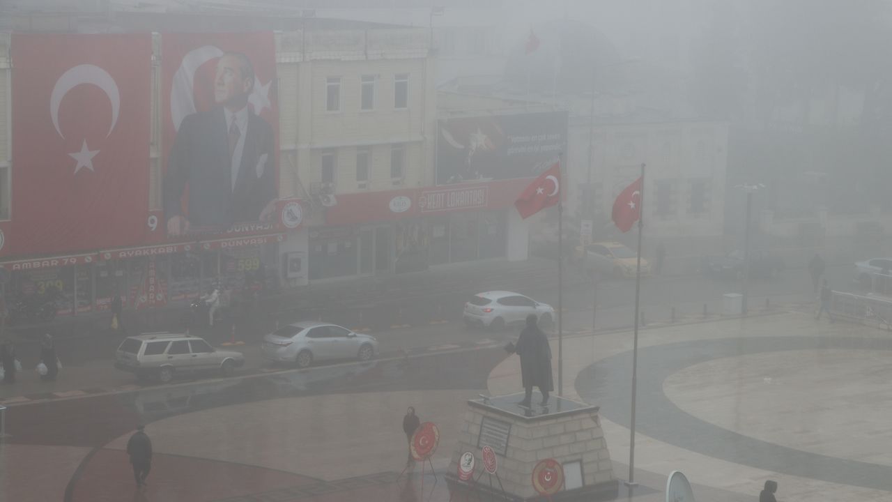 Kent merkezinde yoğun sis nedeniyle görüş mesafesi 10 metreye kadar düştü.
