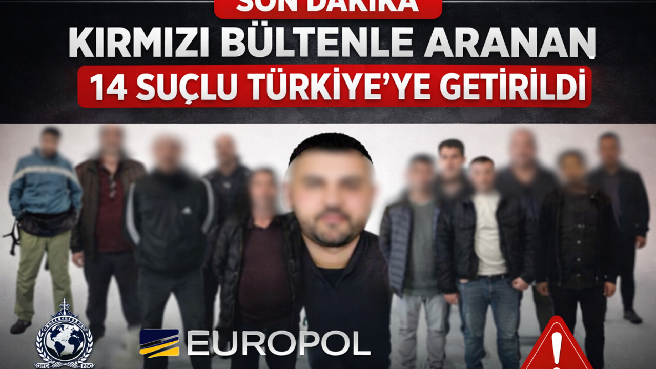 Kırmızı bültenle uluslararası seviyede aranan 13 suçlu ile ulusal seviyede aranan 1 suçlu, yurt dışında düzenlenen operasyonlarla yakalanarak Türkiye’ye getirildi.