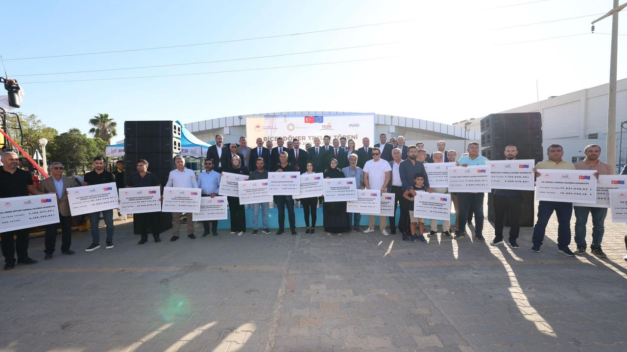 Mardin'de, Tarım ve Kırsal Kalkınmayı Destekleme Kurumu (TKDK) tarafından 16 kooperatife 30 biçerdöver teslim edildi.