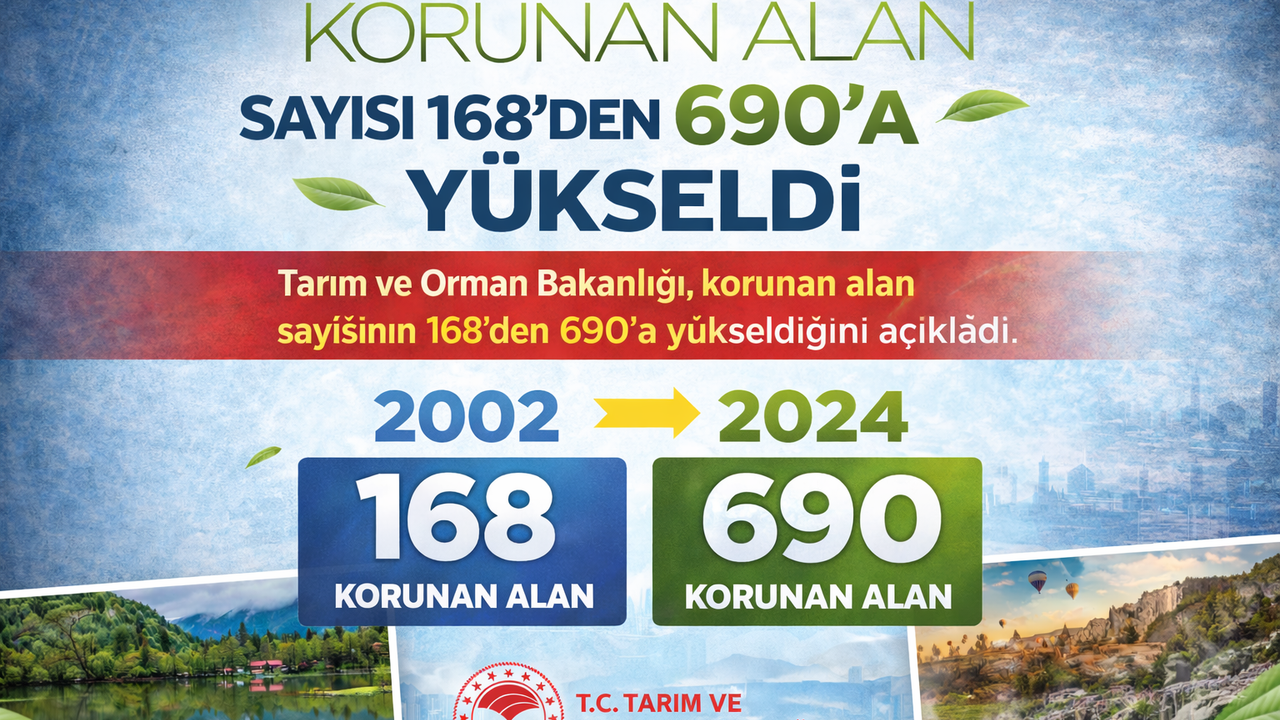 Tarım ve Orman Bakanlığı, Türkiye’nin biyoçeşitliliğini ve doğal mirasını korumaya yönelik çalışmalar kapsamında korunan alan varlığının son 20 yılı aşkın sürede 4 kat artırıldığını duyurdu. Yapılan açıklamada, 2002 yılında 168 olan korunan alan sayısının 690’a ulaştığı bildirildi.