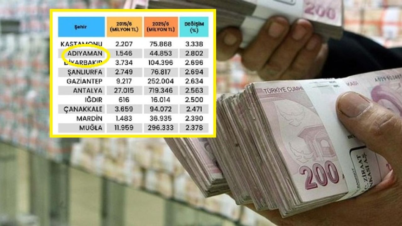 TÜİK’in analizine göre son 5 yılda “Mevduat Artışı” yaşayan şehirler listesinde Güneydoğu Anadolu Bölgesinden sadece Adıyaman’ınımız 4. sırada görülüyor. Son 10 yıla bakıldığında ise Türkiye 2.’siyiz. 2015 yılında bankalarda 1.546 milyon liramız varmış, bugün ise 44.853 milyon liramız. Bu rakamın kolayca yazılışına bakmayın ben tam olarak kaç lira olduğunu bilmiyorum, bakın tamı tamına 44.853.000.000 lira, okunuşunu ve alım gücünü sizler daha iyi hesaplayabilirsiniz.