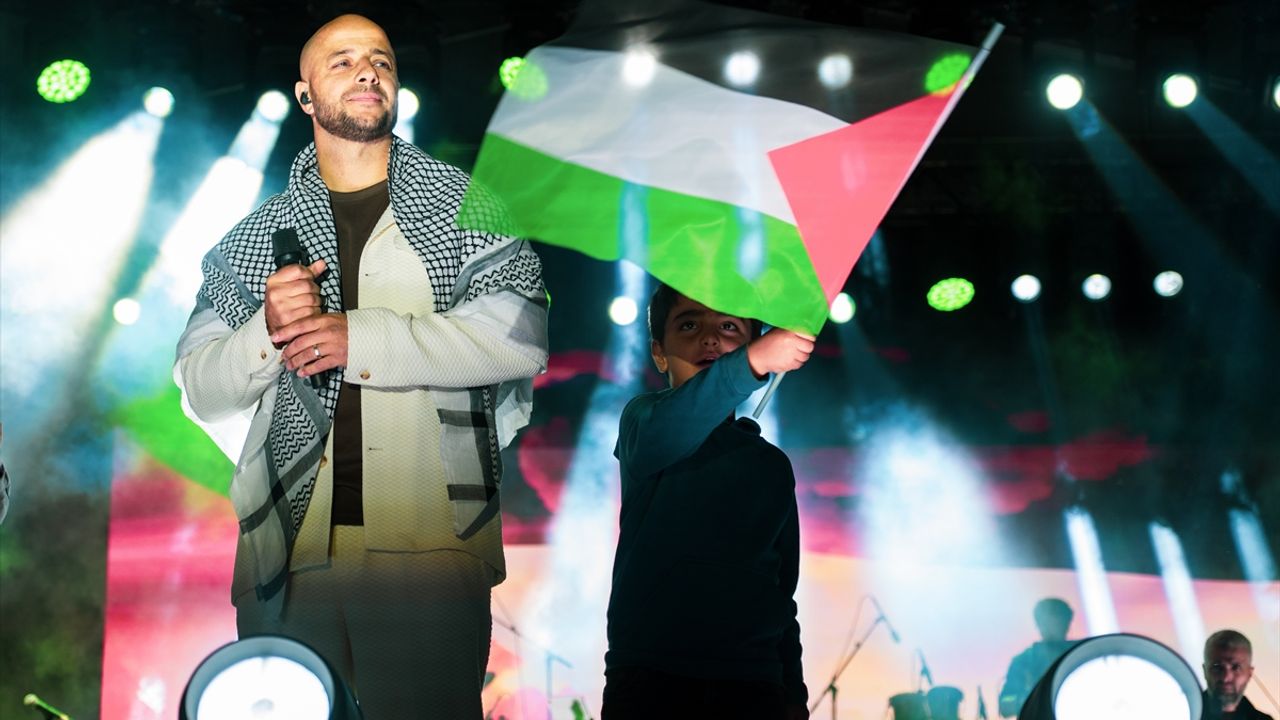 Zain, Filistin bayrakları eşliğinde 'Ya Habiba Ya Falastin' şarkısını söyleyerek Filistin mücadelesine bir kez daha destek verdi.