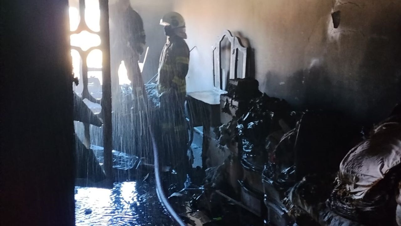 Yangında evde bulunan anne ve 3 çocuğu itfaiye ekiplerince tahliye edildi.