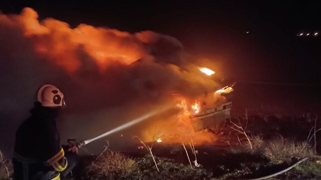 İtfaiye ekiplerinin müdahalesiyle söndürülen yangında, tır hasar gördü.