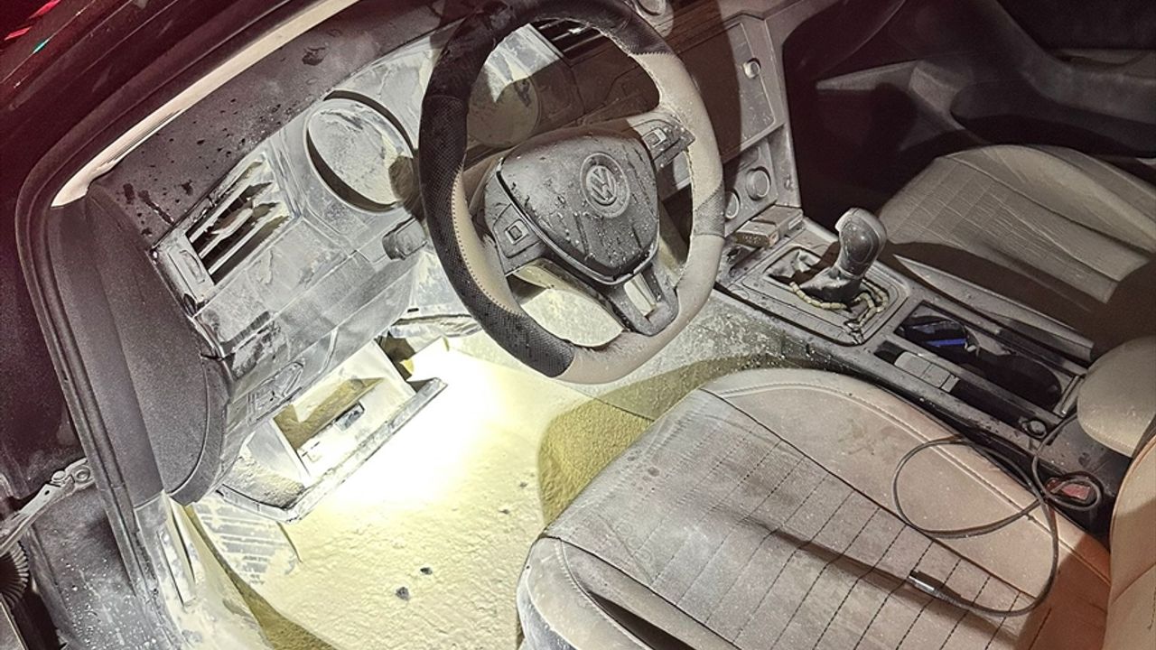 Ekiplerin müdahalesiyle söndürülen yangında, araçta hasar oluştu.
