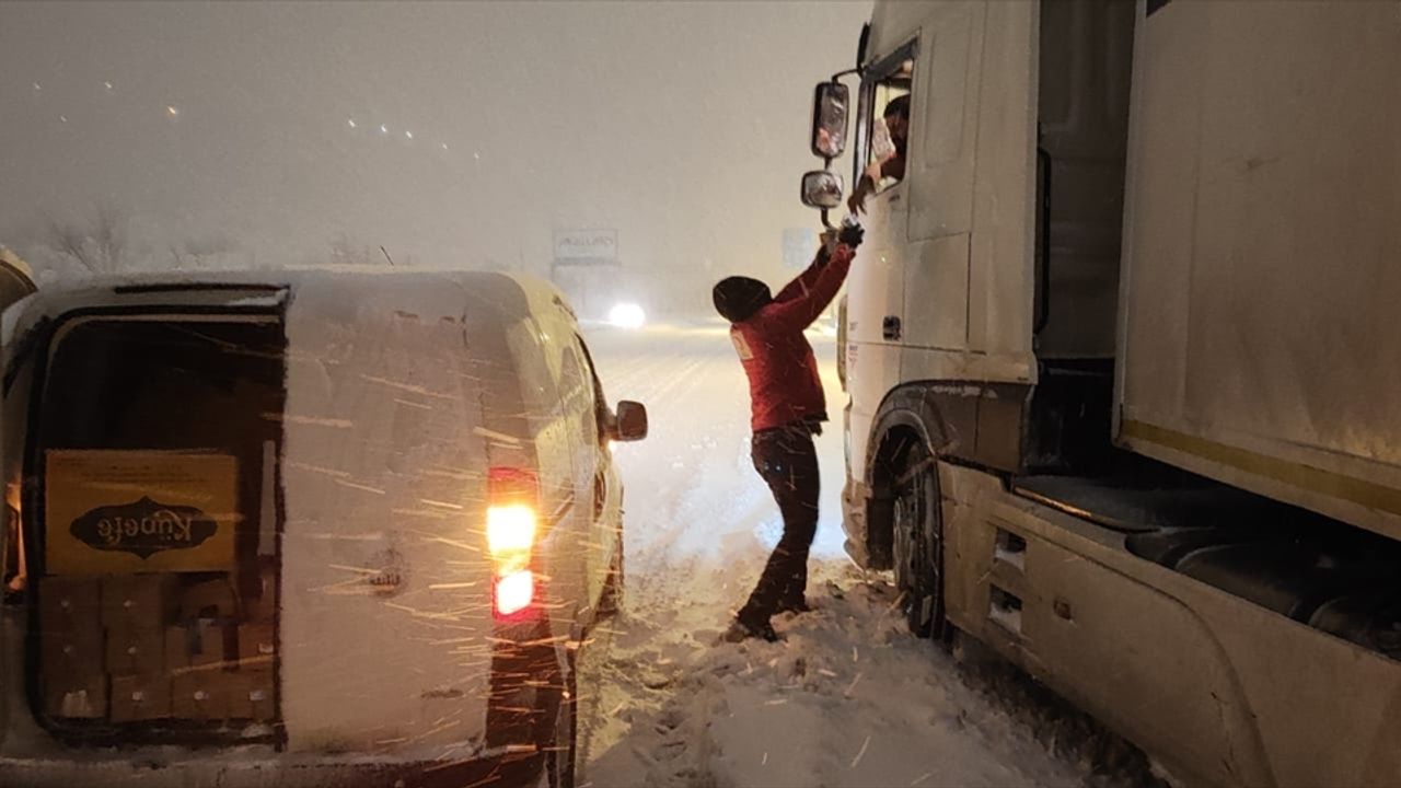 MARDİN (AA) - Mardin'de yoğun kar yağışı nedeniyle yolda kalan sürücü ve yolculara ikramlarda bulunuldu.