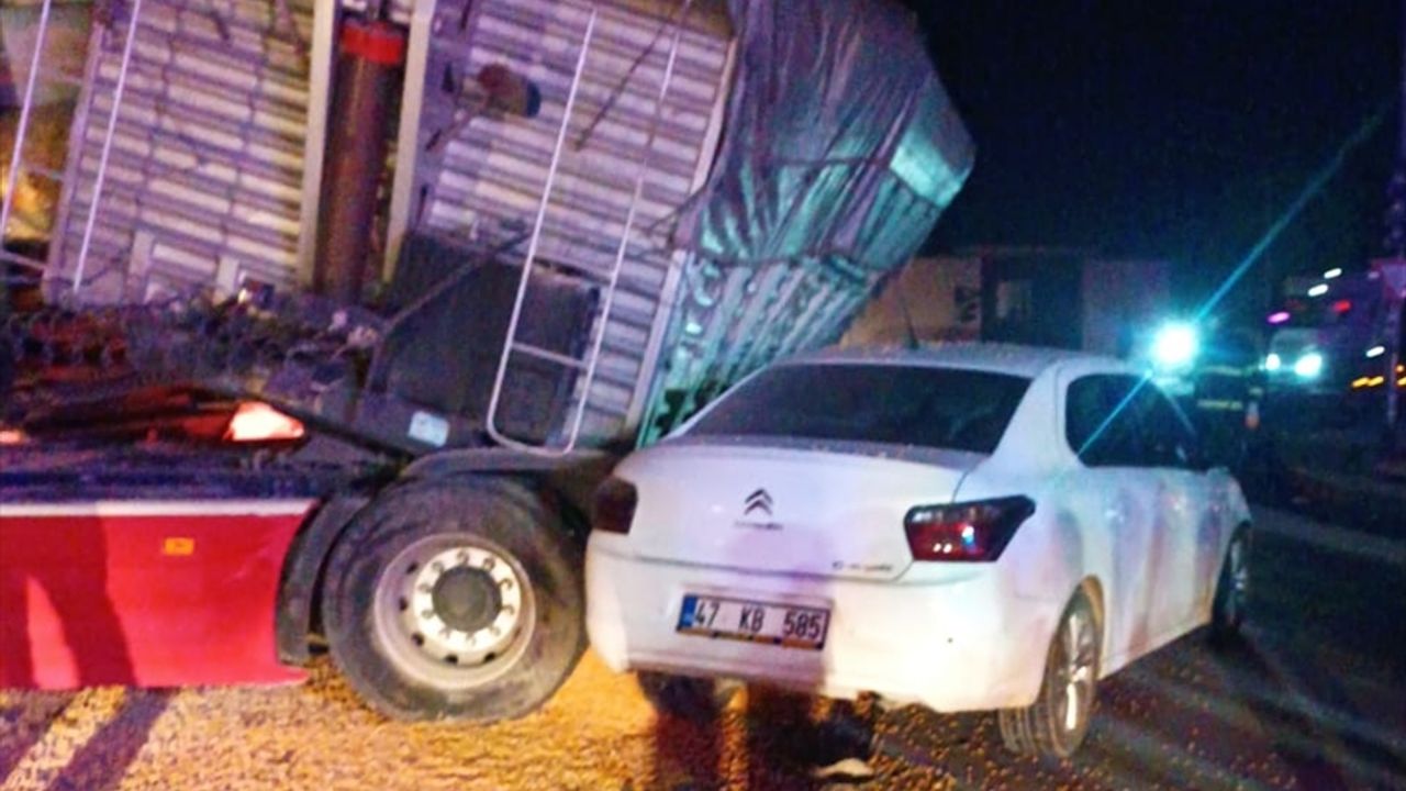 Sürücülerinin kimliği ve plakaları henüz öğrenilemeyen mısır yüklü 2 tır ile 1 otomobil, Fırat Mahallesi'nin Ceylanpınar Caddesi'nde çarpıştı.