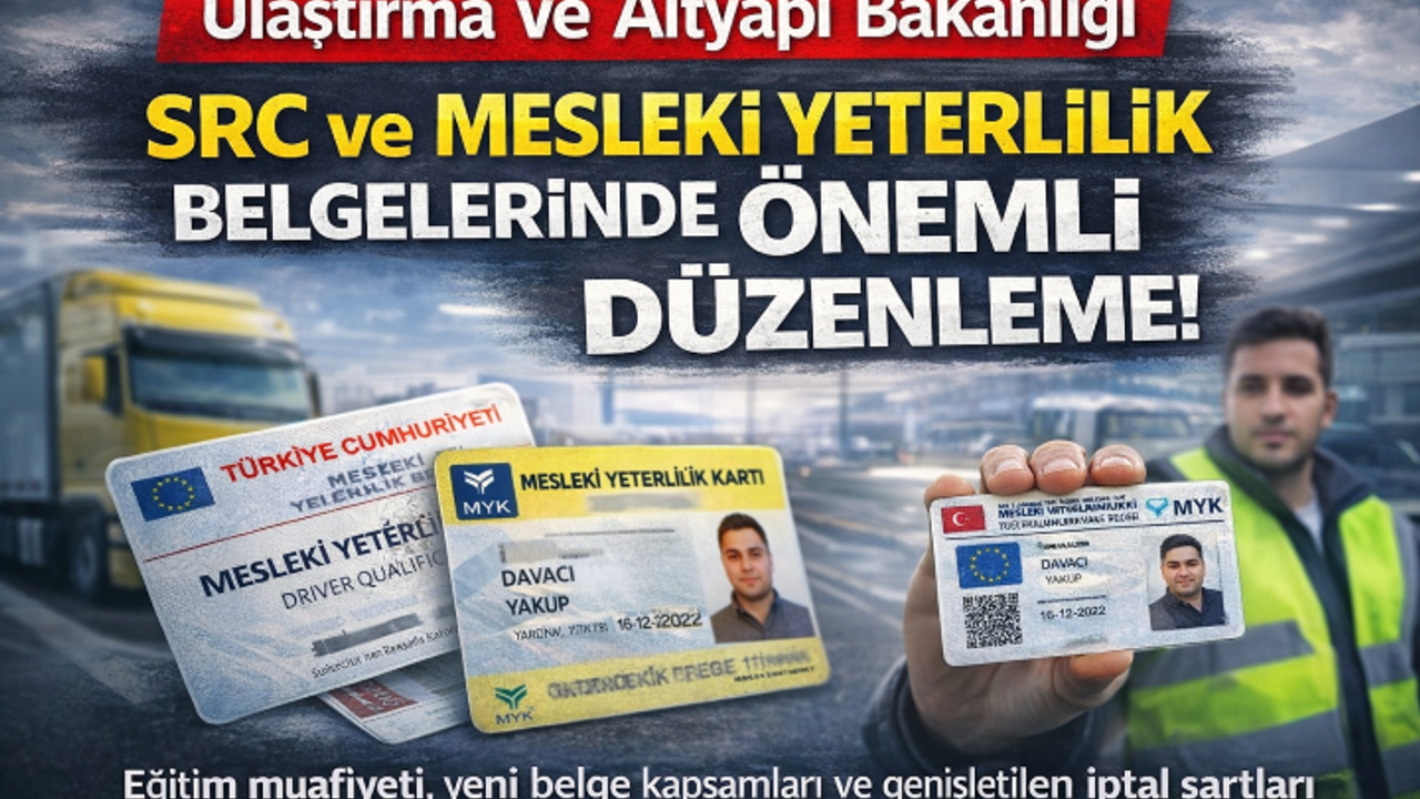 Adli sicil kaydı bulunan, belge alırken yanıltıcı beyanda bulunan veya başkasına ait takograf kartı kullanan sürücülerin mesleki yeterlilik belgeleri iptal edilecek. Ayrıca 66 yaş üstü sürücülerin SRC belgeleri geçici olarak geçersiz sayılacak; yeniden geçerli olabilmek için sağlık raporu sunmaları gerekecek.